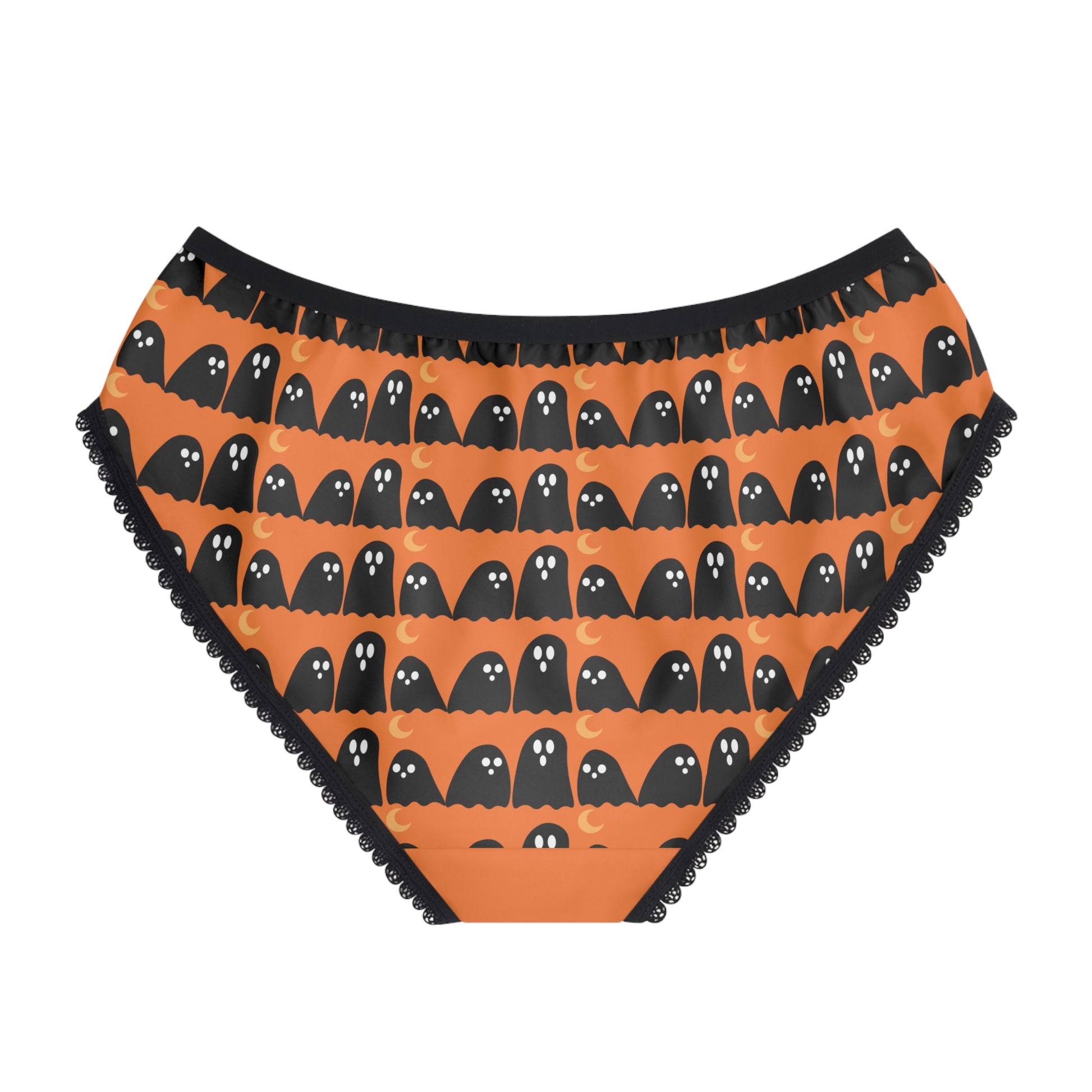 Vibrant Women Halloween briefs with ghost design, perfect for adding a fun touch to your outfit during the spooky season. The soft polyester fabric and elastic waistband ensure a comfortable fit all day long. Ideal for women looking to celebrate Halloween in style.